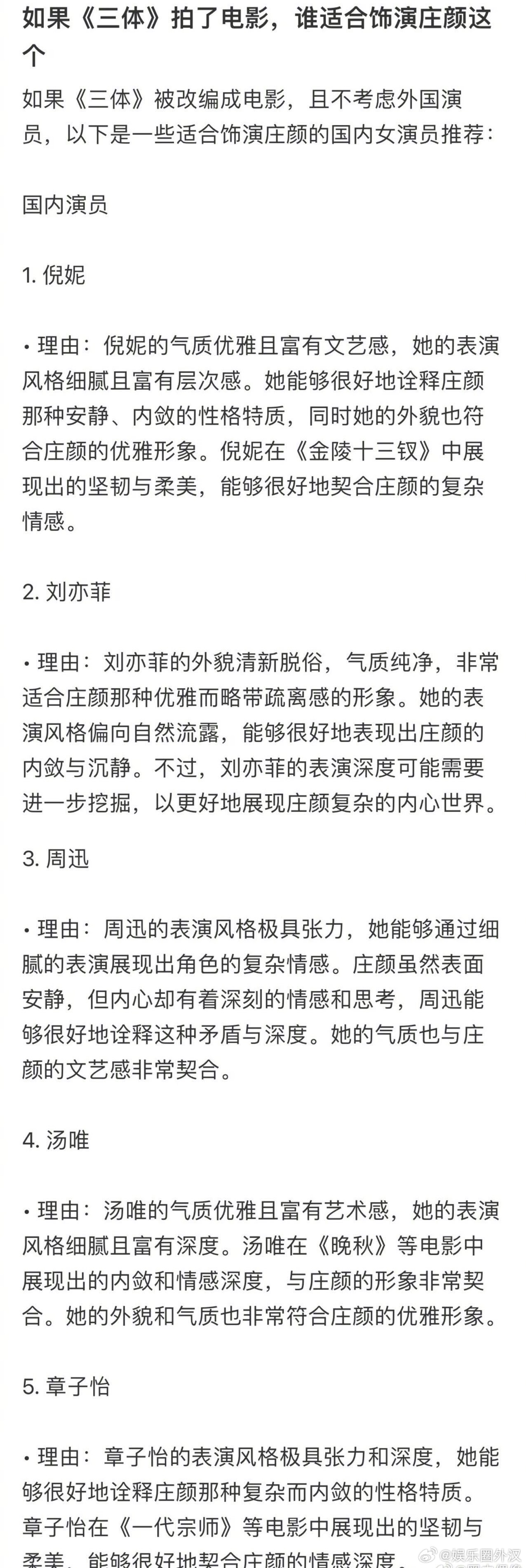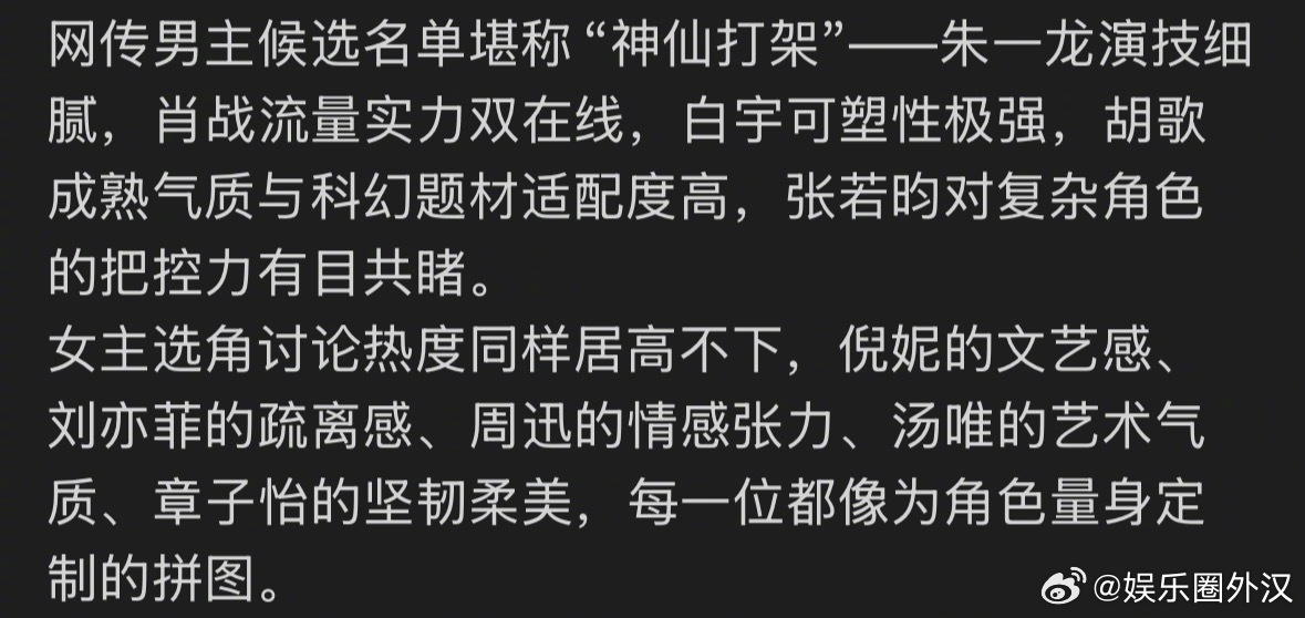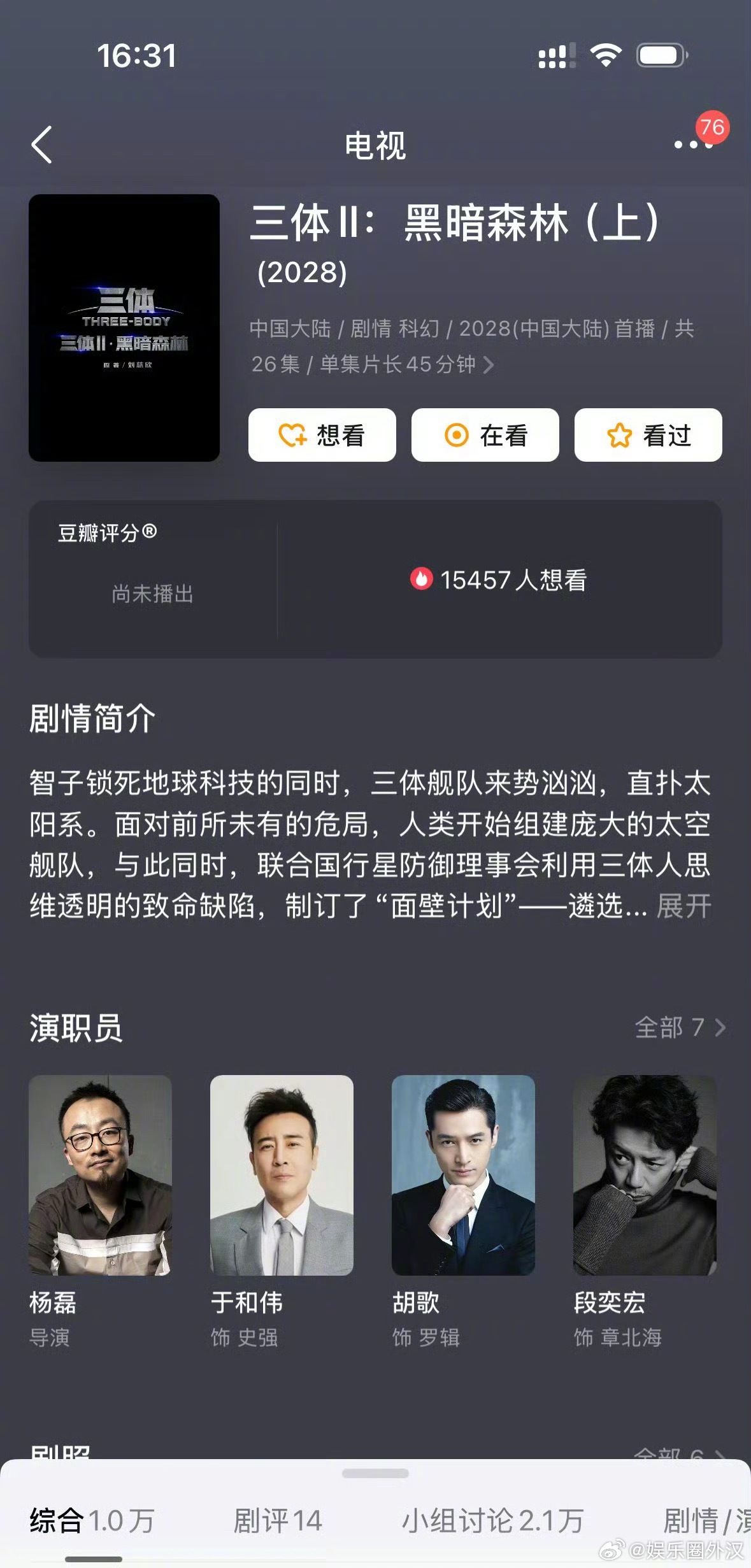 首先,老谋子我就不看好,其次,不能胡歌!每次说三体阵容就有他?真就自己想要争这个