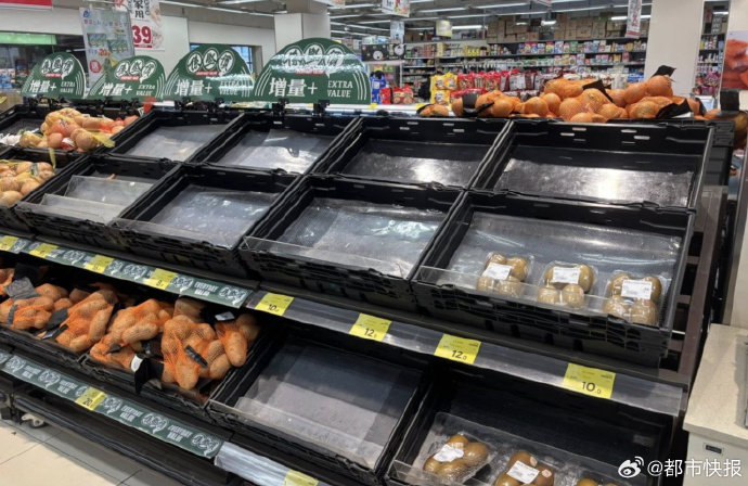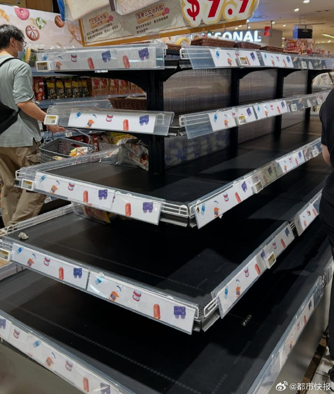 香港媒体报道,香港多家超市的蔬菜、肉类、面包、方便面及瓶装水货架都被扫空,就连比较昂贵的有机菜都已卖光。超市的付款处排起长队,预计排队超过半小时。