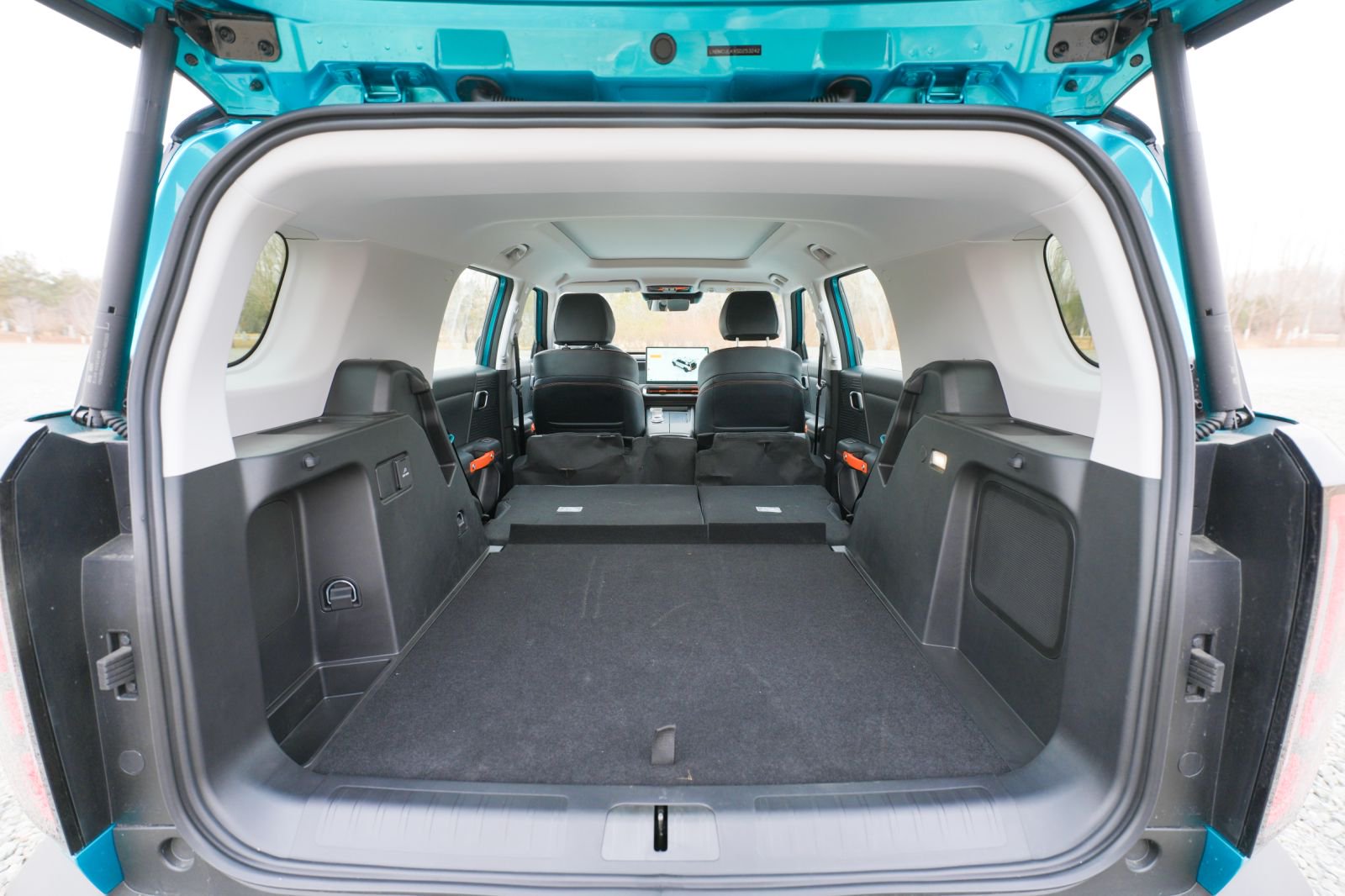 打开电动感应尾门,露营装备的摆放完全不用“见缝插针”。便携式烧烤架可以稳稳立在角落,冷藏箱平铺在底部仍有余量,折叠桌椅拆分后整齐排列,双人帐篷打包后竖着放入刚好贴合后备厢高度。更贴心的是,后备厢设置多处固定网兜和挂钩,露营灯、驱蚊液等小件物品可以分类收纳,避免行驶过程中晃动碰撞。
