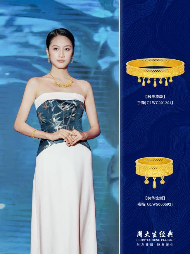 杨文琴大师的深度解读,让这份对传统文化的敬意和探索的热情持续升温,周大生经典品牌大使李小冉也就此次发布的新品,分享了自己的感受,并细致阐述了所佩戴的衣脉金承系列的灵感巧思。她高度认同周大生经典将非遗元素巧妙融入当代珠宝设计的匠心理念,并赞扬品牌在文化传承与创新上的卓越追求,为这场文化盛宴更添璀璨光彩。