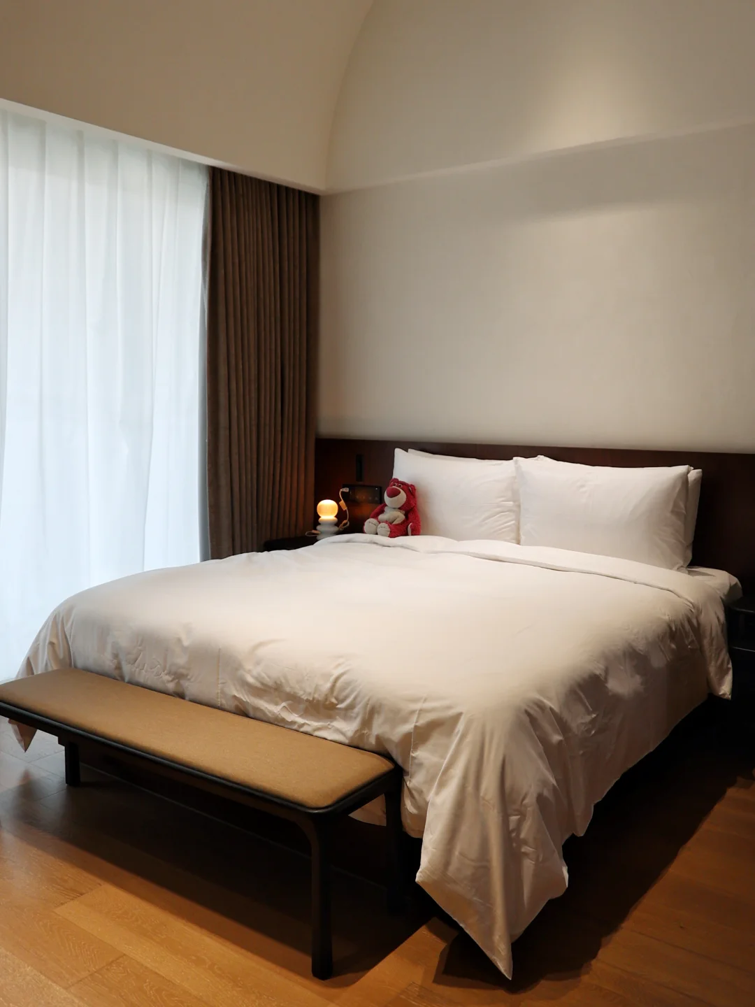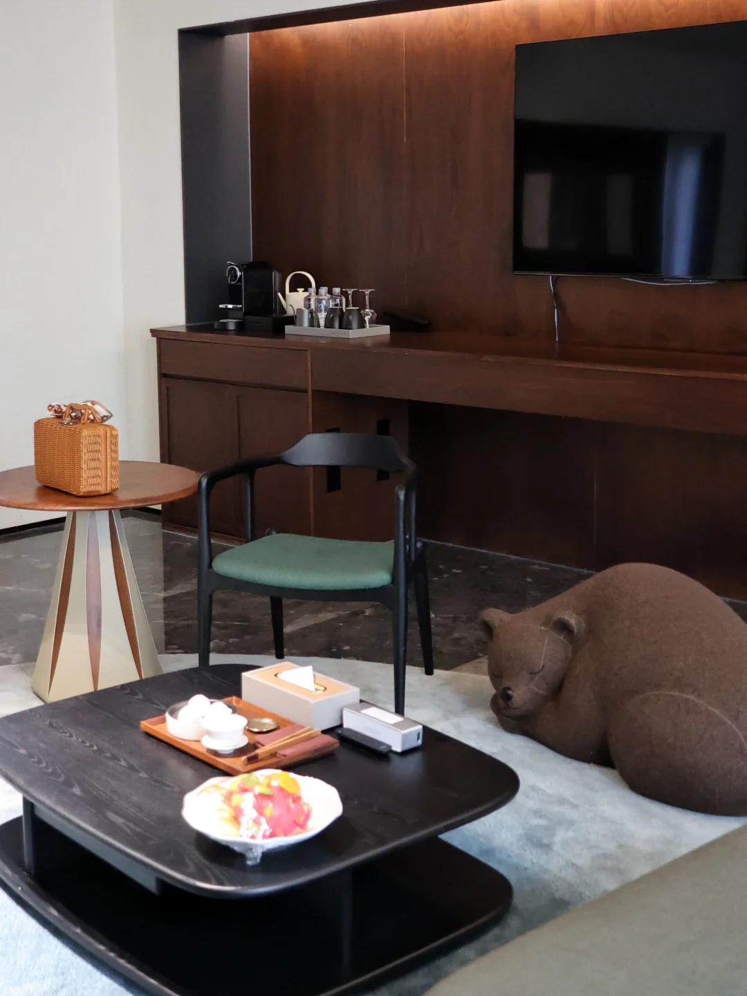 作为「有熊x梵几」的联名款,酒店全是独栋别墅套房,15套客房涵盖单卧到三卧,三代同堂或朋友组团都能住得舒服。室内软装全是梵几的质感家具,极简又温馨.