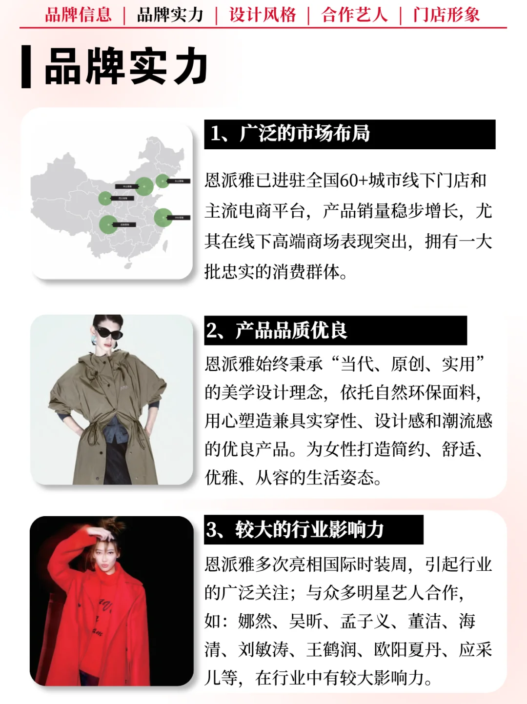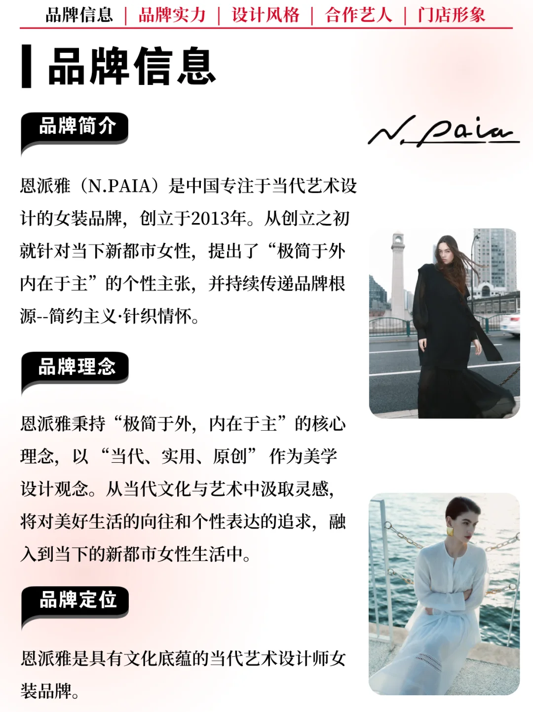 📌 品牌定位:恩派雅是具有文化底蕴的当代艺术设计师女装品牌。