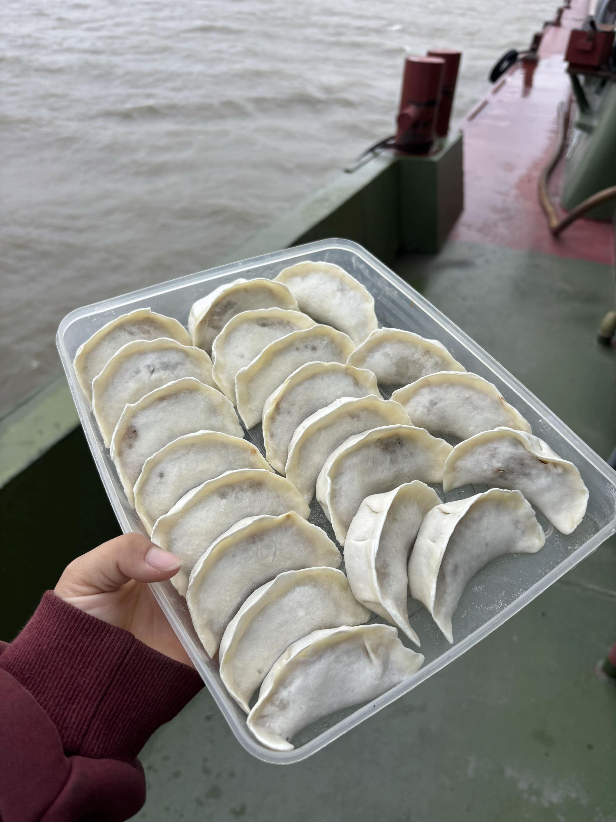 昨晚那么大的风,用了两个多小时帮朋友船脱浅,双方缆绳都断了,早上走的时候阿姨端来一盆大饺子🥟,看着就很好吃,是煎还是煮应该怎么吃呢跑船人