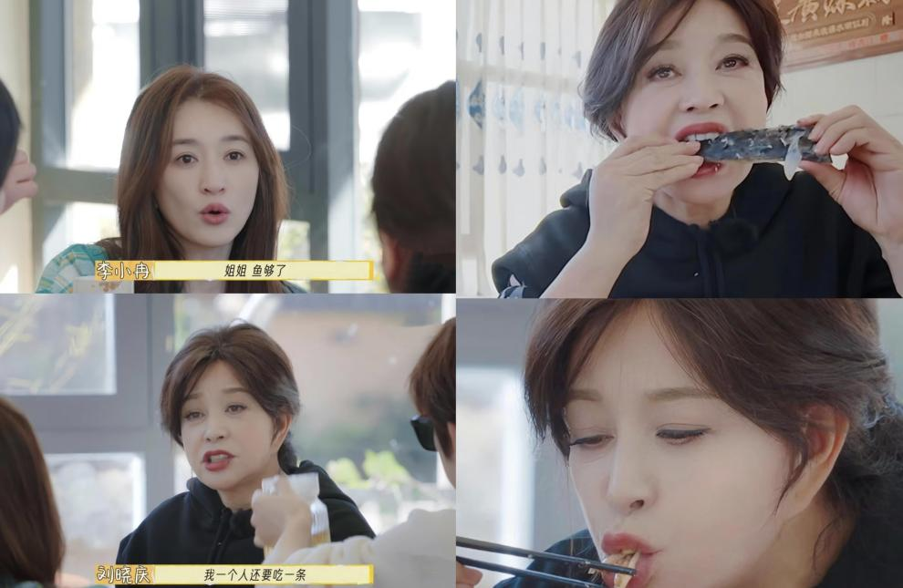 在综艺《一路繁花》里,李小冉觉得菜够了,刘晓庆淡定说可以再加条鱼,“我一个人能吃一条”。