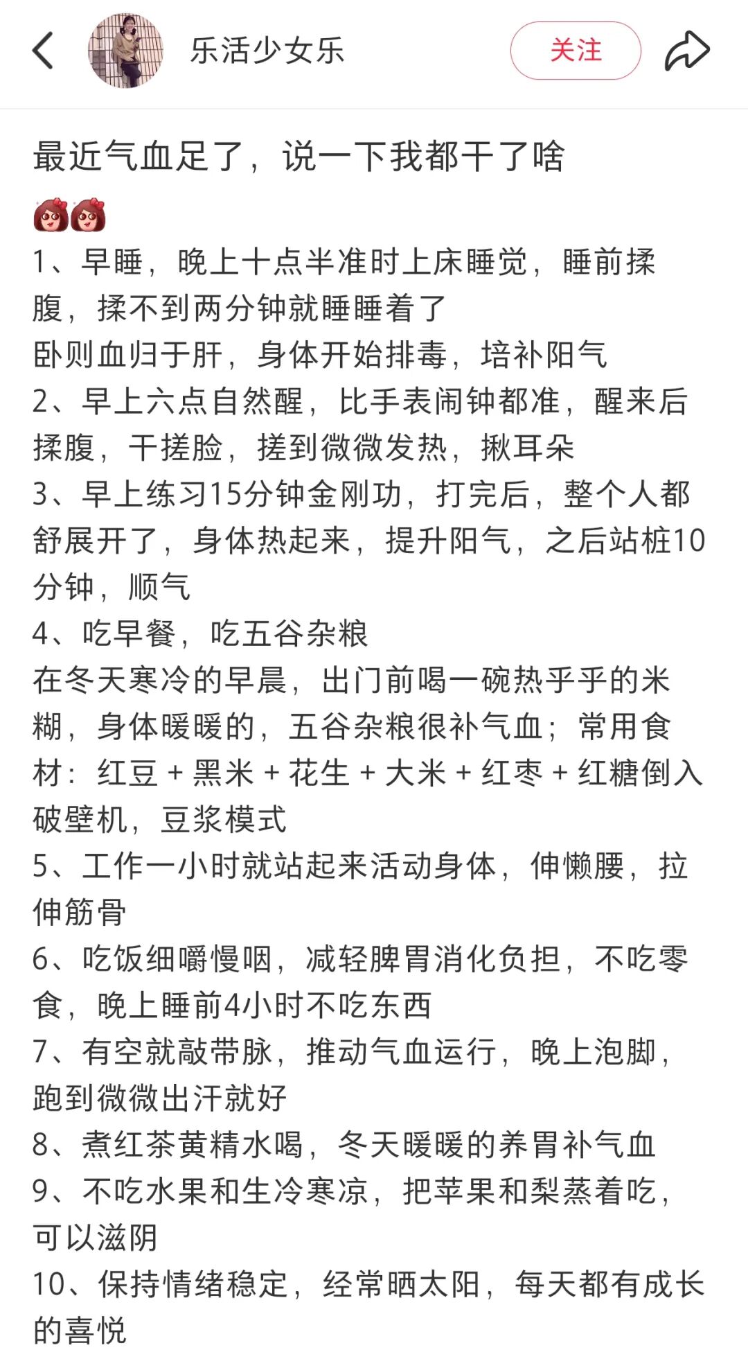 网友分享补气血经验,图源网友@乐活少女乐。