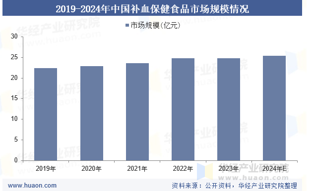 华经产业研究院数据,2019-2024年,中国补血保健品市场持续增长,已超24.7亿。