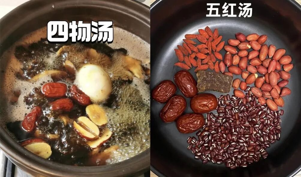“四物汤”(当归、川芎、白芍、熟地黄)和“五红汤”(红枣、枸杞、红糖、红豆、红花生)在养生圈轮流上场。