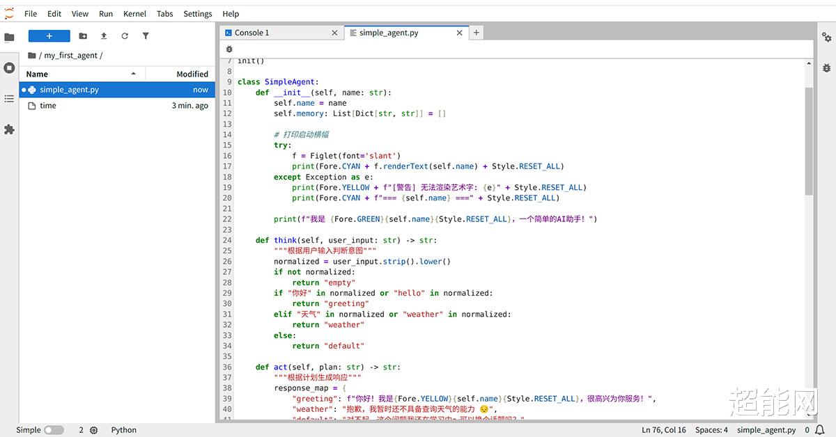 开发:从零搭建Agent智能体仅仅只会跑现成的模型还不够,AIBOOK的核心定位是“开发工具”。为了验证其编码实战体验,我们利用系统内置的Jupyter Notebook,尝试从零构建一个AI Agent 原型。
