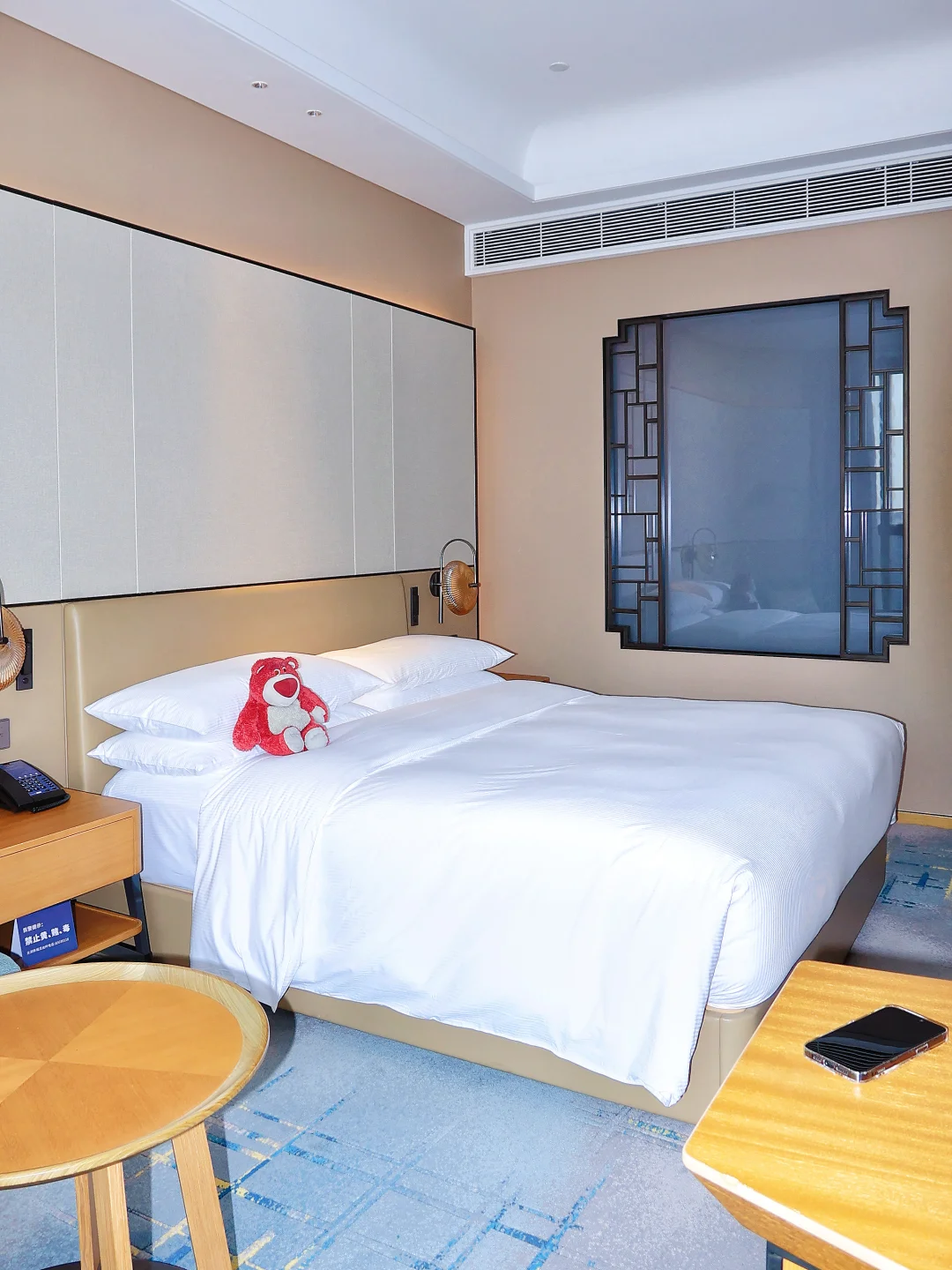 房间view必须吹爆!城景房竟能望见太湖支流,清晨阳光洒在浅灰地毯上,木质家具暖调拉满,瞬间切换放松模式。床品软得像陷进云朵,游玩回来倒头就睡,连闹钟都没听见!