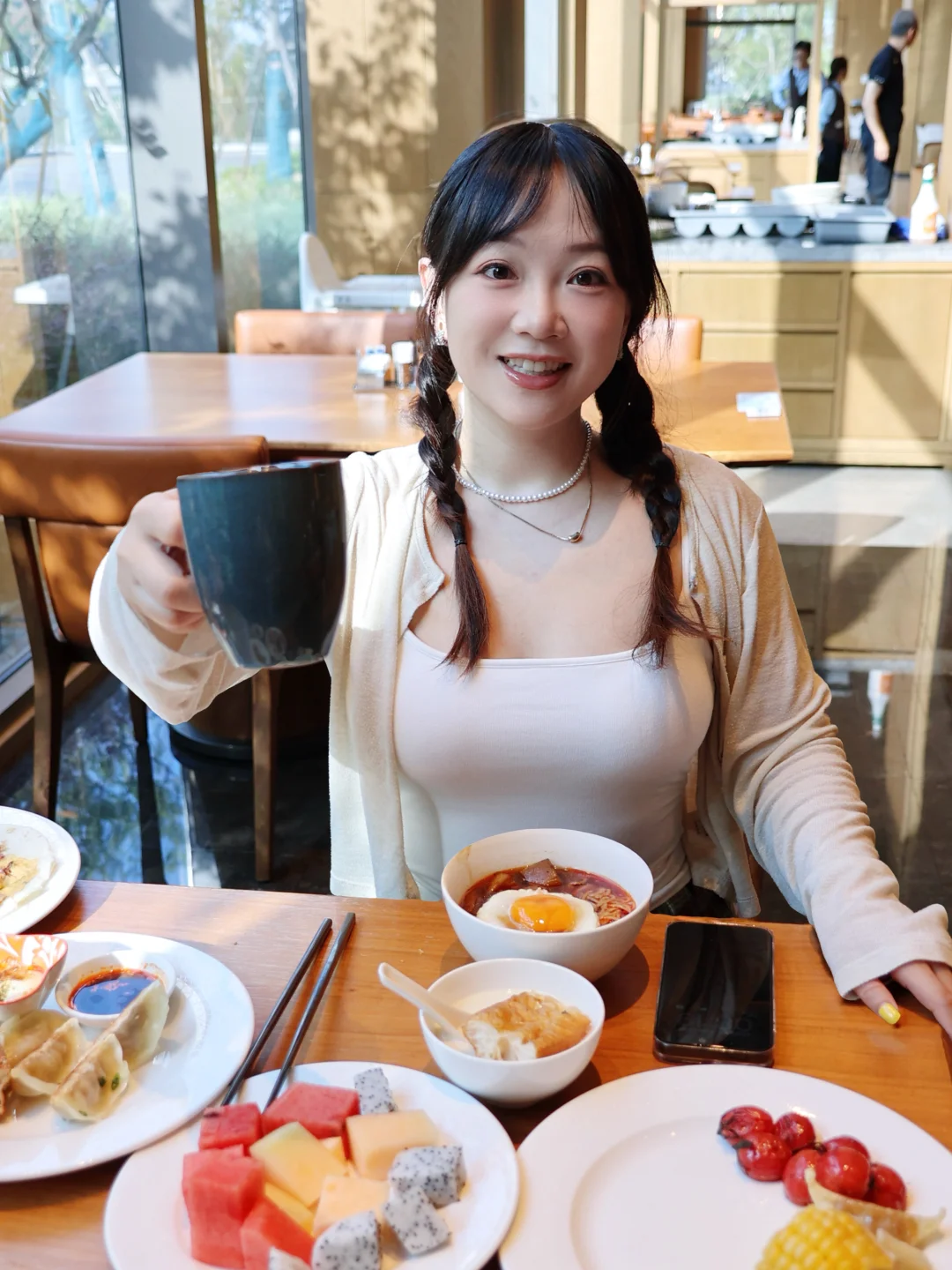 早餐种类很丰富,中西结合,苏式汤面一定要试,汤鲜面劲,配上浇头瞬间唤醒味蕾,还有欧美乐队驻唱哦, 在音乐声中开启美好的一天~