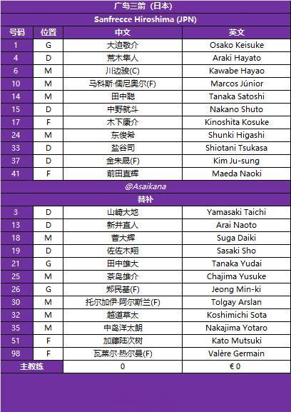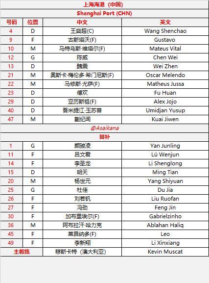 虎扑09月30日讯北京时间今天18:00,上海海港即将在客场迎战广岛三箭,赛前双方公布首发名单。