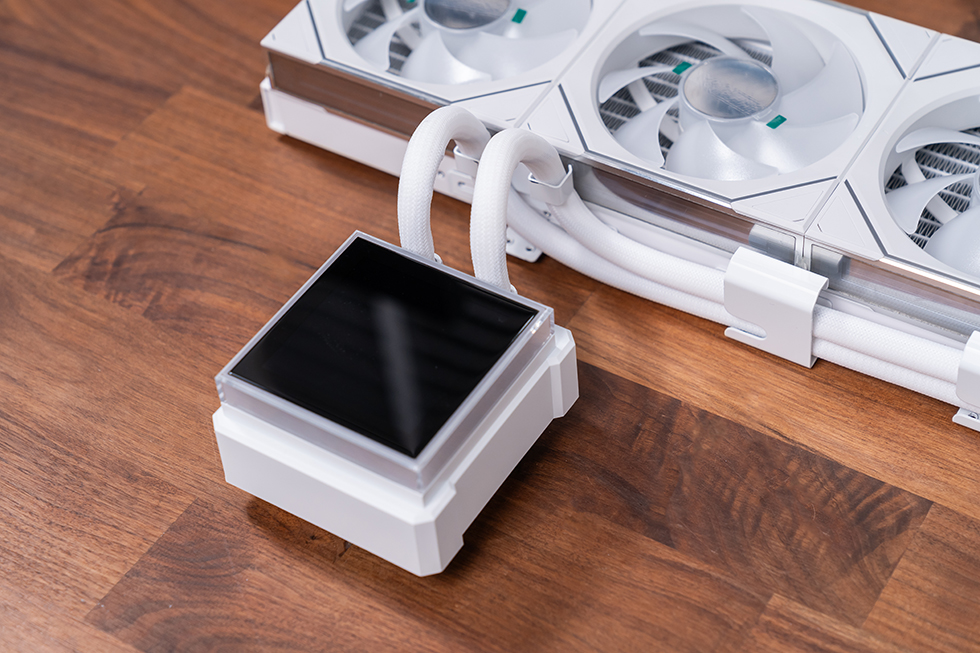 隐流二代360 LCD版本配备了一块通过磁性方式固定在冷头上、并通过弹簧针供电的LCD模块。这款3.4英寸方形IPS液晶屏拥有480x480的锐利分辨率、500尼特亮度及流畅的60Hz刷新率。优雅的方块造型四周环绕着LED灯带,提供三种多功能控制模式:离线模式可摆脱软件束缚;无线模式支持通过L-Wireless控制器远程调节主题与灯光效果;高级USB连接模式在通过USB连接时,可借助L-Connect 3软件实现全面自定义功能。