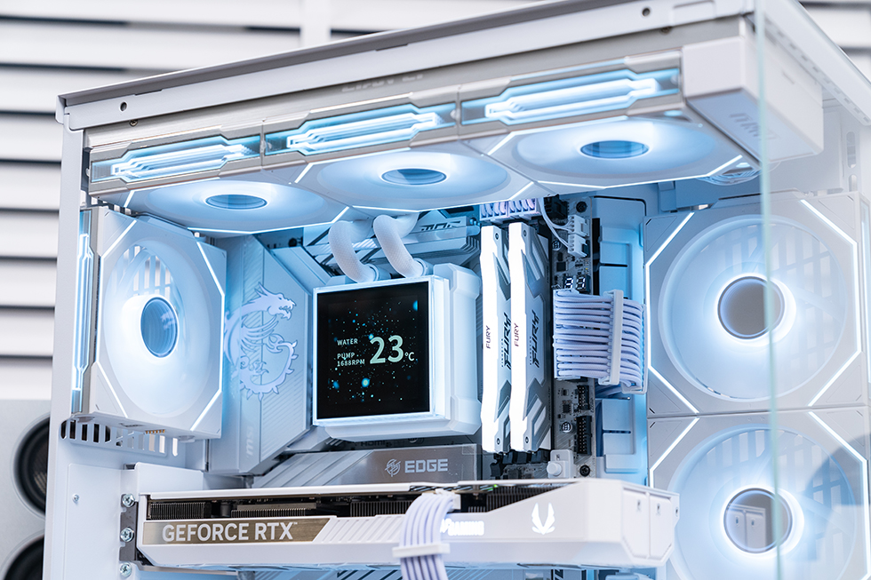 本次装机,我们以它为核心舞台,搭载Intel最新Ultra 7 265K处理器、微星MPG Z890 EDGE TI WIFI主板,以及索泰GeForce RTX 5070 Ti 16GB SOLID CORE OC WHITE显卡,辅以金士顿FURY叛逆者DDR5 8400高频内存与宏碁掠夺者GM9000疾速SSD,构建一套兼顾美学、静音与强悍性能的白色主题平台。配合联力隐流二代360 LCD一体式水冷、INF120无线积木风扇三代,以及白金认证的SX1000P全模组电源,整机不仅性能拉满,更在视觉上呈现出冷静克制又不失科技感的“联力美学”。