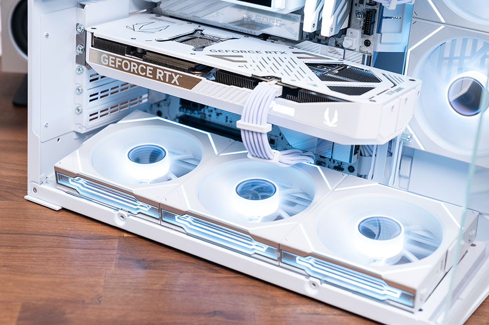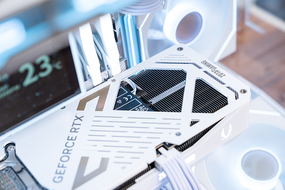 索泰 GeForce RTX 5070 Ti 16GB SOLID CORE OC WHITE显卡采用了 IceStorm 3.0 先进散热系统,搭配更大的散热鳍片面积和优化的风道设计,能够有效提升散热效率。此外,Blade Link 风扇设计,在提供强大风力的同时,还能降低风扇运转时产生的噪音,实现了散热与静音的较好平衡。