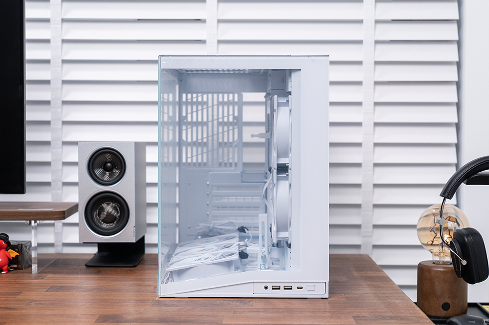 值得一提的是,IO面板位置可灵活调整。默认位于顶部右前方(含USB-C、双USB-A、音频接口和电源键),也可通过拆卸螺丝移至机箱前下部,方便用户将主机置于桌下时仍能轻松操作。
