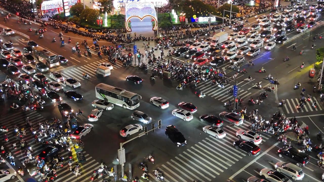 再堵的路也挡不住湛江游子回家的心!9月30日晚,湛江人民大道被游子回家的星河点亮