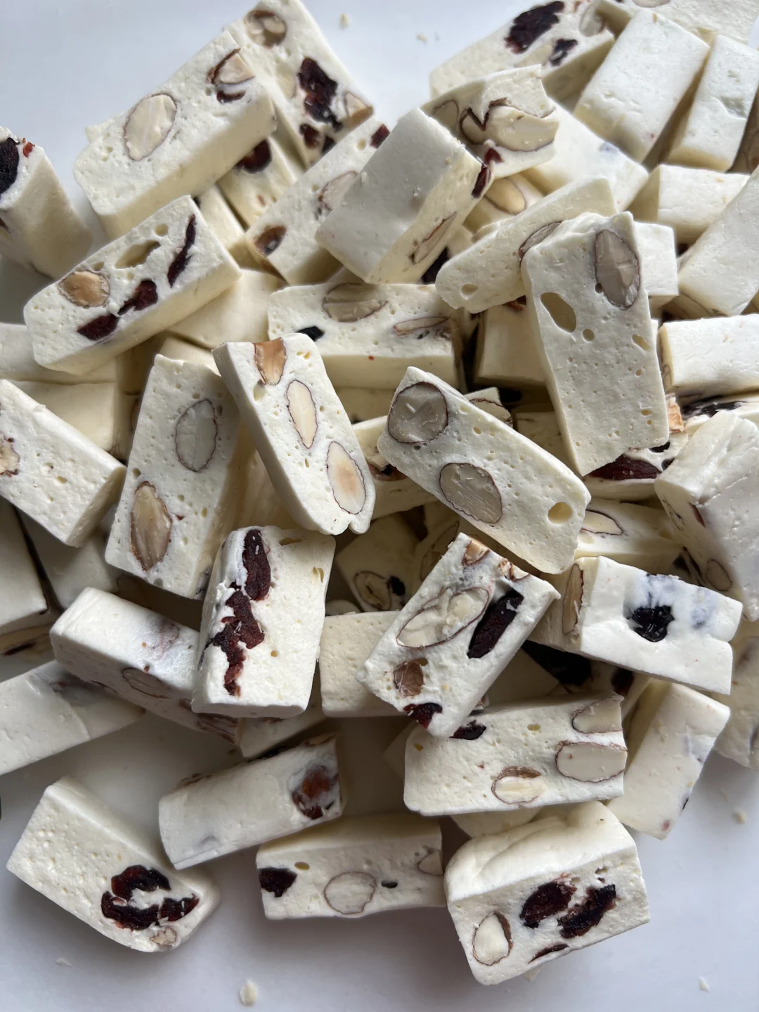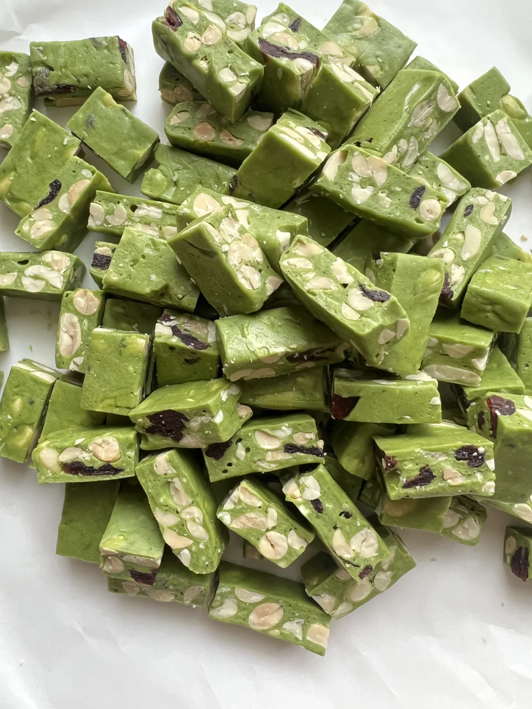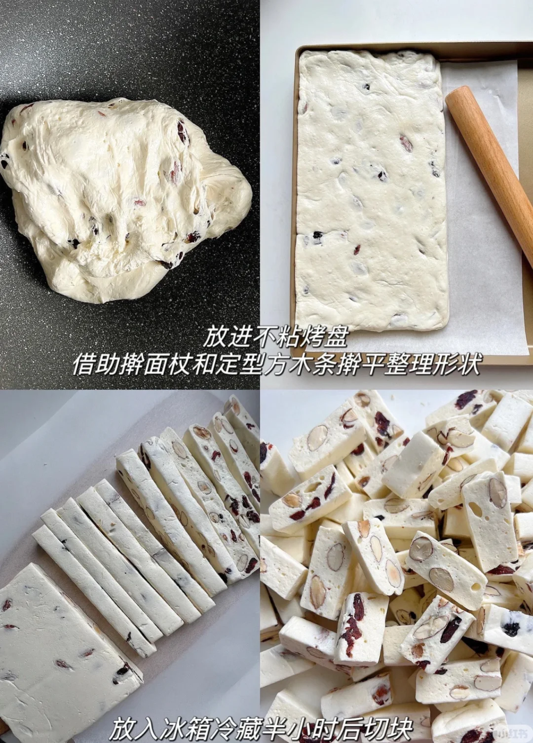 ⭐️憩解锁其他口味牛轧糖也很简单:在加入奶粉那一步,加入抹茶粉或可可粉,加入坚果这一步替换其他坚果,比如花生仁、巴旦木、开心果、芝麻之类,按照自己喜好来就好!