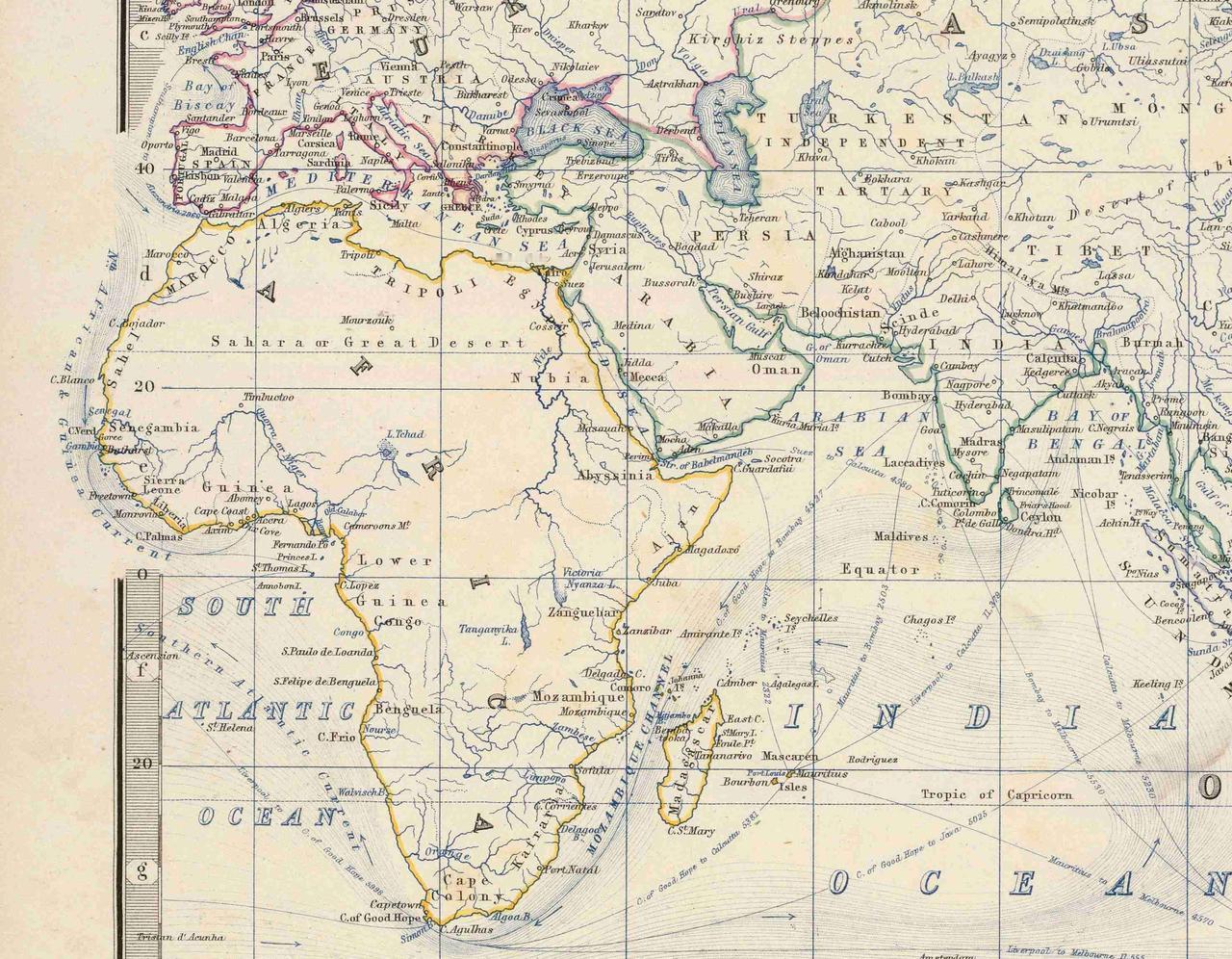 每日更新【近代地图】1869年英国出版的《约翰斯顿皇家现代地图集》世界大地图。