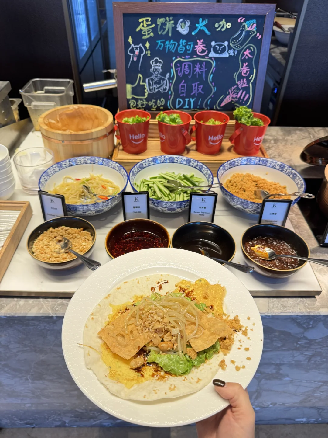 早餐种类很丰富,中西结合,苏式汤面一定要试,汤鲜面劲,配上浇头瞬间唤醒味蕾,还有欧美乐队驻唱哦, 在音乐声中开启美好的一天~