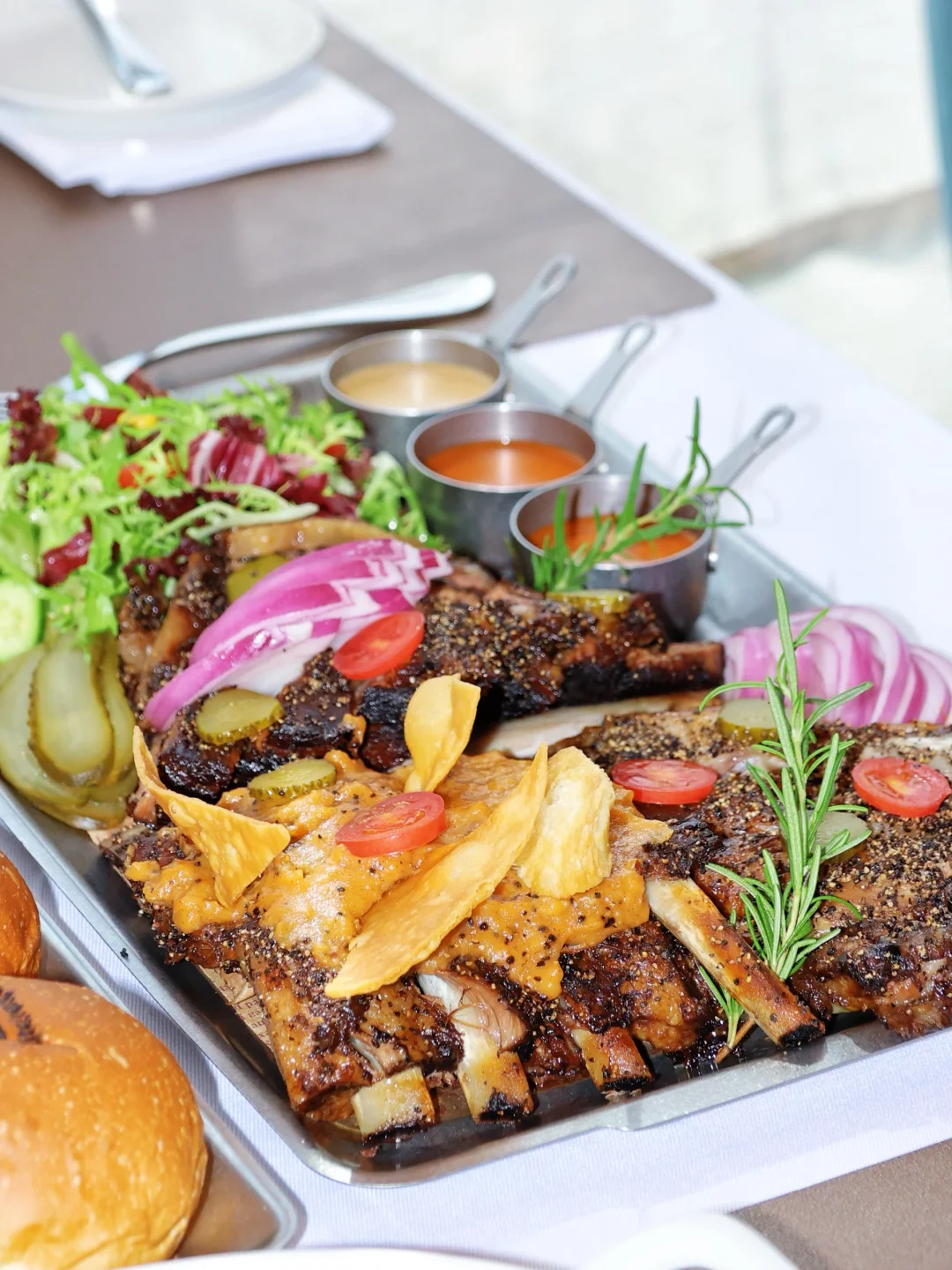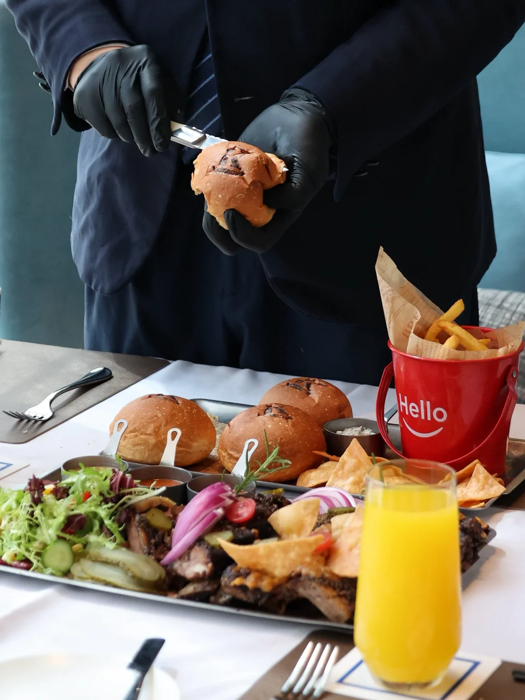 💚西餐厅厨艺全日制餐厅的午餐简直是忙碌打卡景点后的续命神器!美式慢熏烤肉套餐,自己diy夹在汉堡里,搭配专属酱料超满足,一口一个满足且吃得超舒心。