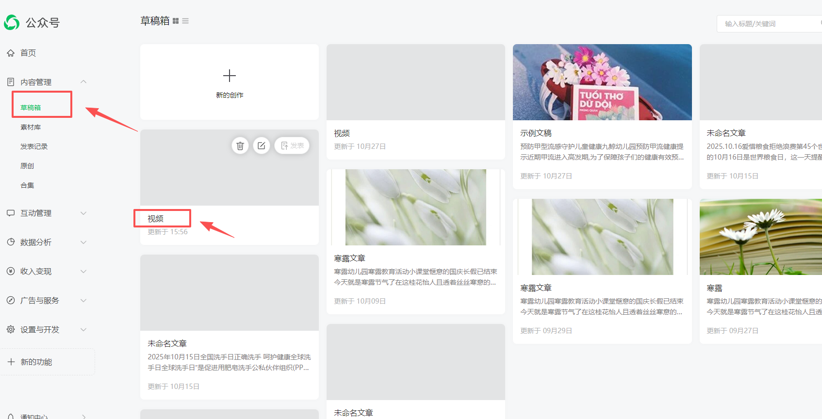 第二步:将视频插入图文点击"写新图文"进入编辑器,找到工具栏上的"视频"按钮。在弹出的页面中选择刚刚审核通过的视频,点击确定就能插入到文中。这里建议先保存为草稿,方便后续修改。