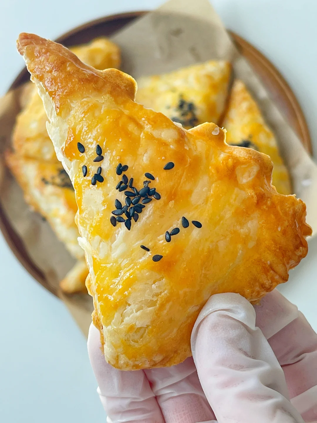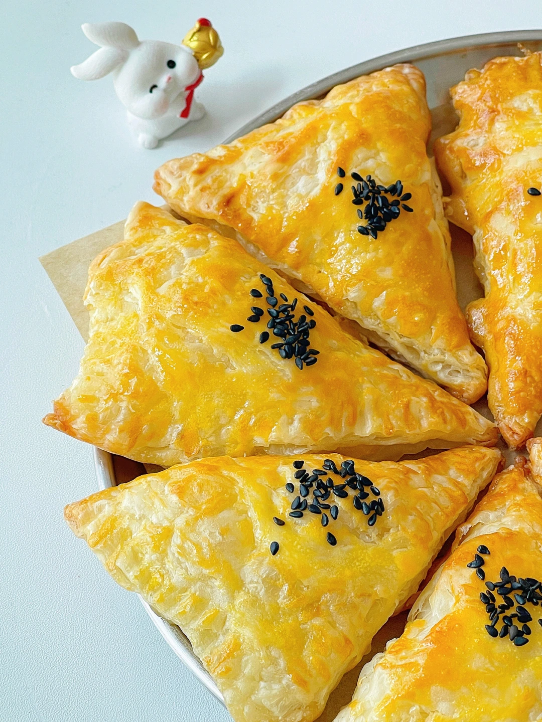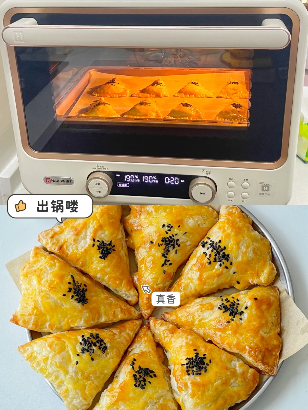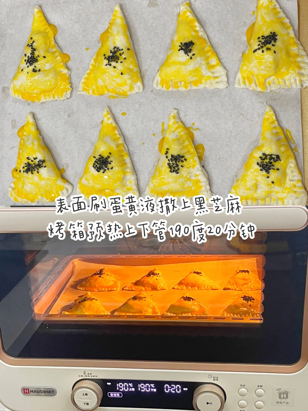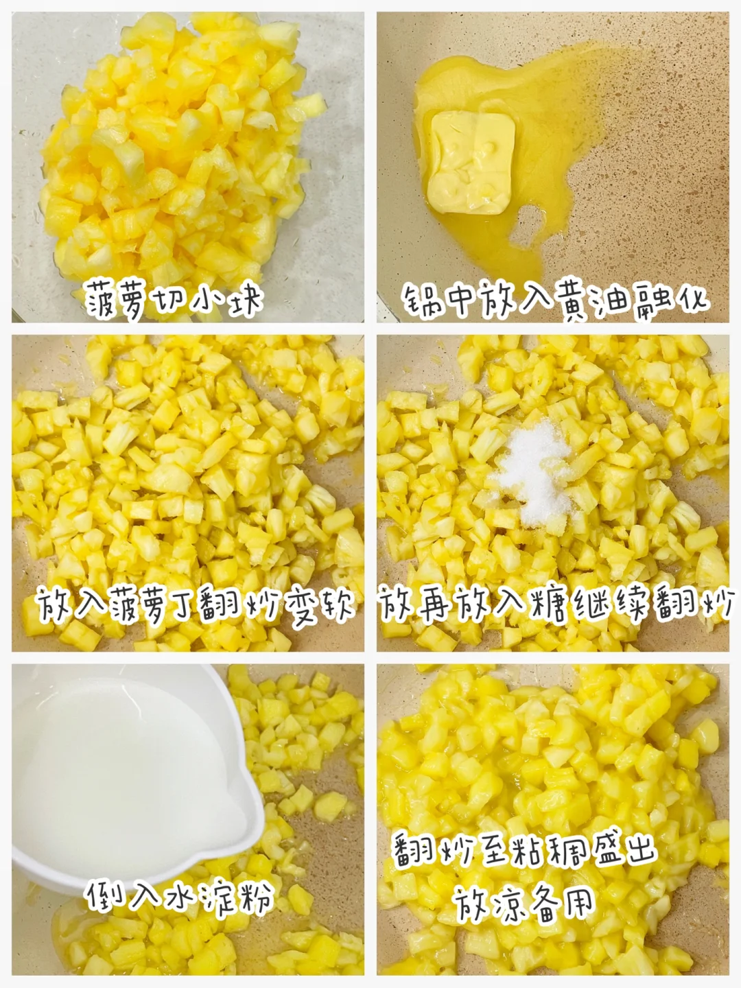 又到了吃菠萝的最佳季节,今天用手抓饼和菠萝搭配做了一款巨好吃的菠萝派,口感酥脆酸甜,做完全家人秒光盘,后悔做少了[偷笑R] ✅准备食材:菠萝、手抓饼、黄油、砂糖、蛋黄、淀粉 ✅制作方法: 🔹菠萝切小块。 🔹锅中放入黄油待融化,放入菠萝丁翻炒变软,再放入2勺糖继续翻炒变软, 🔹放入水淀粉,翻炒至粘稠盛出放凉备用。 🔹手抓饼解冻变软,分成4小块,每块中间放入菠萝馅儿料,用叉子把边缘压紧。 🔹烤箱提前预热,上下管190度20分钟。
