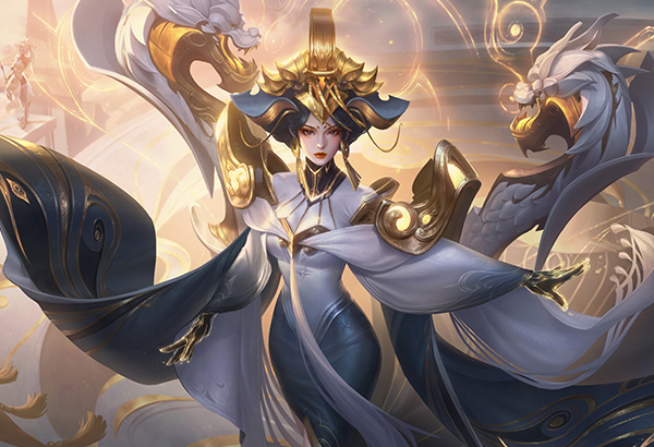 新皮肤方面,咱们的女帝武则天终于又有新衣服了。这次是一款全球甄选系列皮肤,复刻自AOV的众世莲音。从爆料来看,这款皮肤是偏古风的青色调,武则天一头白色盘发搭配精致的头纱,裙子上点缀着莲花装饰,整体形象仙气飘飘,非常唯美。局内特效也是以莲花为主题,技能释放时应该会有步步生莲的既视感。复刻到国服后,这款皮肤大概率是传说限定品质,而且特效还会进行本土化优化,喜欢女帝的玩家可以好好期待一下了。