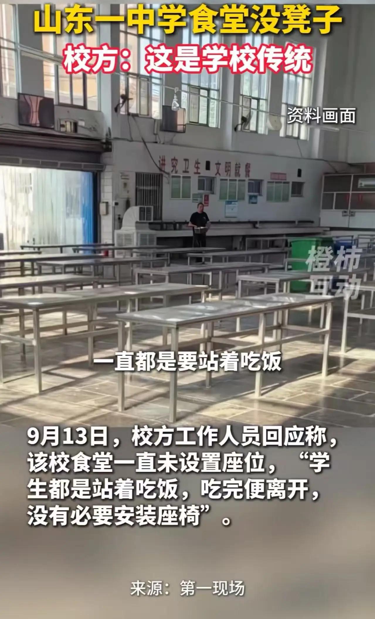 吵翻了!山东聊城冠县,一中学食堂没有座椅、全体学生需要站着吃饭!有家长看不下去,