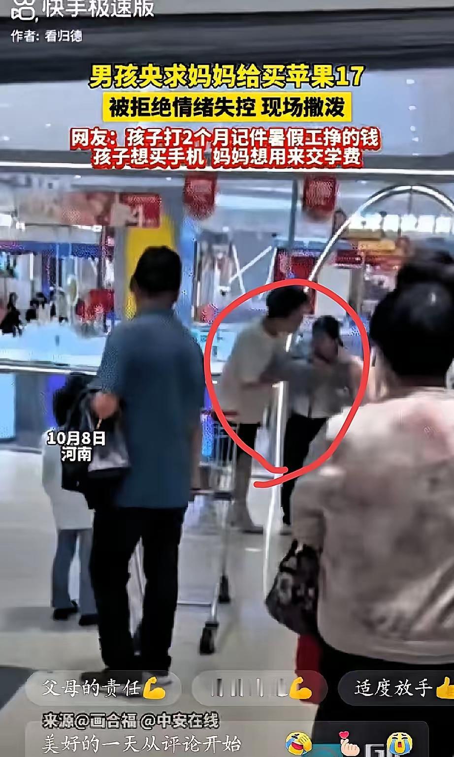 “我是为了你好!”是大多数父母挂在嘴边的一句话。 初三男孩暑假2个月辛苦赚15000元,想要买苹果手机,妈妈把钱收走:“你要上高中了,三年学费要花很多钱……” 男孩情绪崩溃,大庭广众之下撒泼。 男孩能崩溃到不顾场地,不顾脸面,是否在这之前父母答应:“你暑假赚到的钱,随便你自己支配。” 好不容易熬完闷热的日子,终于领到15000元辛苦费。最后,被母亲告知:“这钱,只能用来交学费的。” 这就是父母失去“信用”问题了。 一些网友说:“肯定不能给孩子买那么贵的手机。” 一些网友说:“孩子自己赚的钱,应该给他买。” 支持和反对都有,所以,体现出“沟通”的重要性,父母和孩子之间也是需要学会的一堂课。 视情况而定,家庭不是特别困难,没必要拿走孩子辛苦赚到的钱。引导孩子对“钱”有一定概念,不是一句话否决孩子支配权。 所以,孩子自己挣的钱,父母该不该收走呢?