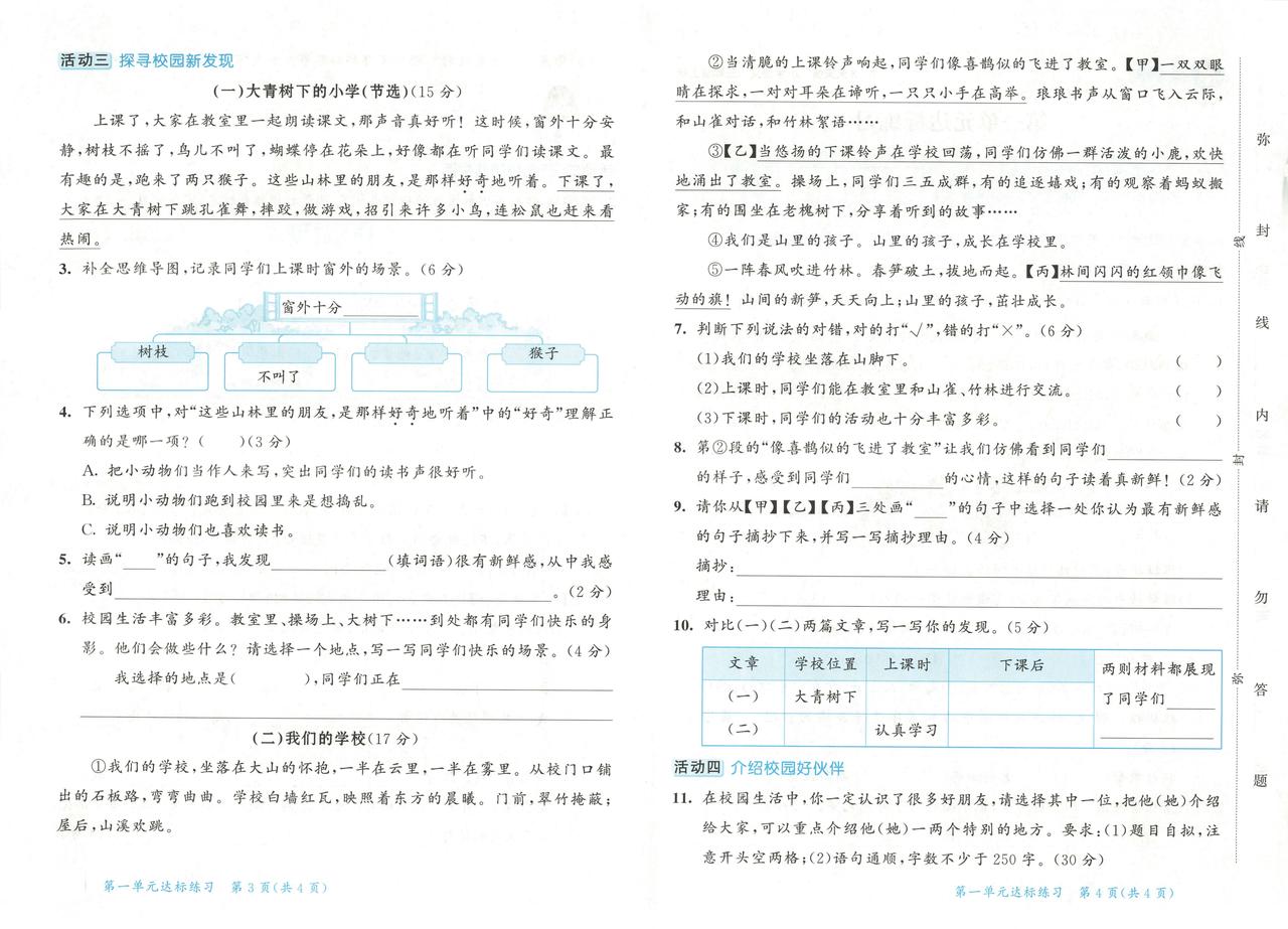 2025秋最新统编版语文三年级上册第一单元达标练习