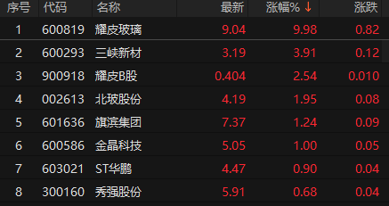 玻璃板块震荡走高 耀皮玻璃2连板