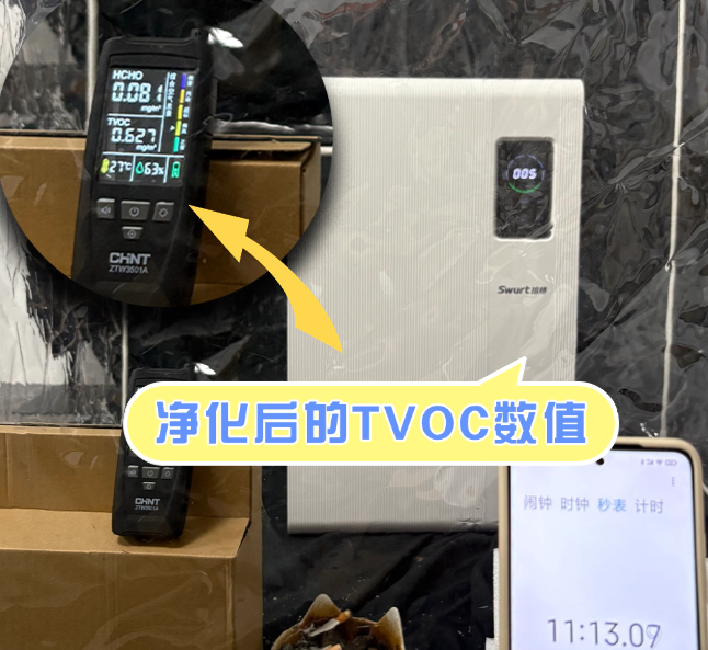 PART3:拾梧FW01壁挂式空气净化器真实测评拾梧FW01真实测评维度1:TVOC净化测试