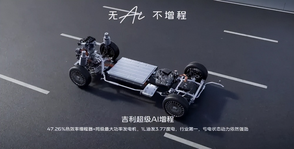 能耗管理上,吉利提出「超级 AI 增程系统」,主打「1L 油发电 3.77 度」的技术指标,试图用 AI 算法优化增程器工况,在性能与经济性之间做动态平衡。
