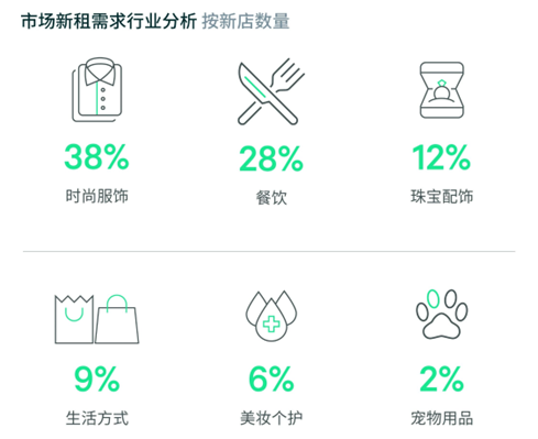 当季,零售品类以68%的占比主导市场需求,其中运动户外类表现尤为突出,在服饰细分领域(占零售需求38%),品牌升级趋势显著。成熟品牌如TheNorthFace在港汇恒隆广场升级形象,并于新天地东台里开设高级全品类店,显示其多层级市场策略。新晋品牌如Popbasic于世纪汇广场开设中国首店,Oneup中国首店则随着新天地东台里一齐亮相。