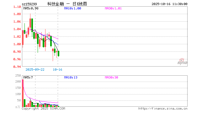 10月16日,截止午间收盘,金融科技ETF易方达(159299)跌1.33%,报0.967元,成交额425.47万元。金融科技ETF易方达(159299)重仓股方面,同花顺截止午盘跌0.05%,东方财富跌0.35%,恒生电子跌1.91%,指南针跌1.33%,润和软件跌3.27%,东华软件跌2.41%,银之杰跌1.26%,新大陆跌1.40%,四方精创跌2.62%,广电运通跌1.53%。