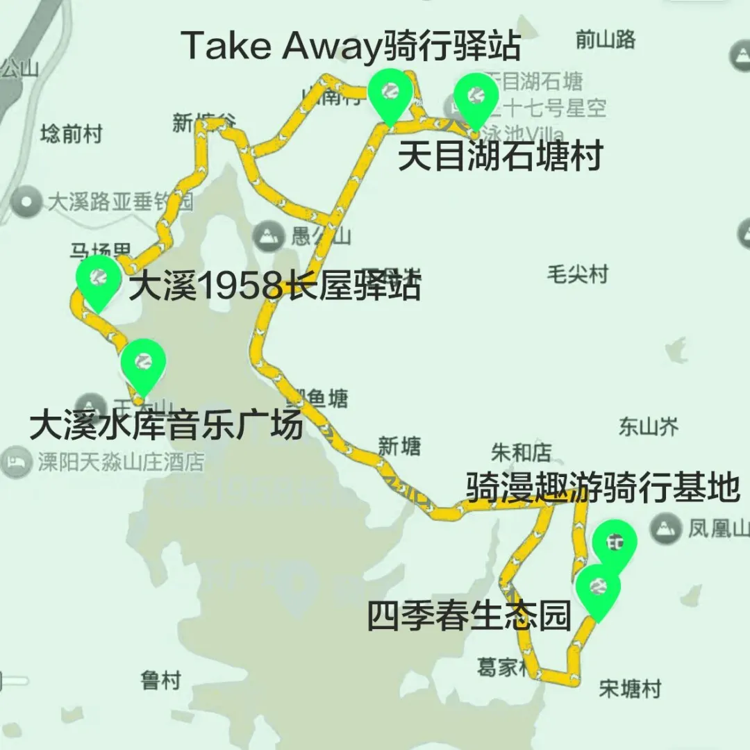 骑漫趣游骑行基地-Take away骑行驿站-石塘村-大溪水库1958长屋驿站-大溪水库音乐广场-四季春生态园