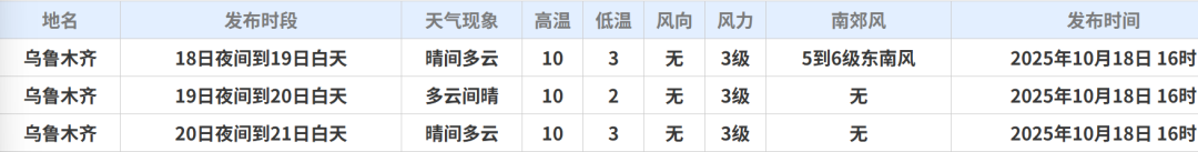 18日夜间到19日白天晴间多云,城区风力3级,南郊东南风5到6级。今天夜间最低气温3℃,明天白天最高气温10℃。未来三天乌市以晴或多云天气为主,气温变化不大