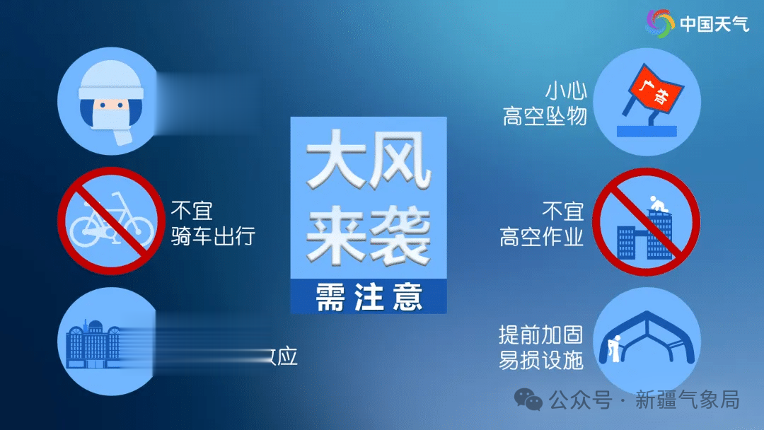 今明两天,塔城地区北部、阿勒泰地区西部、乌鲁木齐市、昌吉州等地的偏东大风对交通出行、设施农业、城市运行等有不利影响,需注意防范。