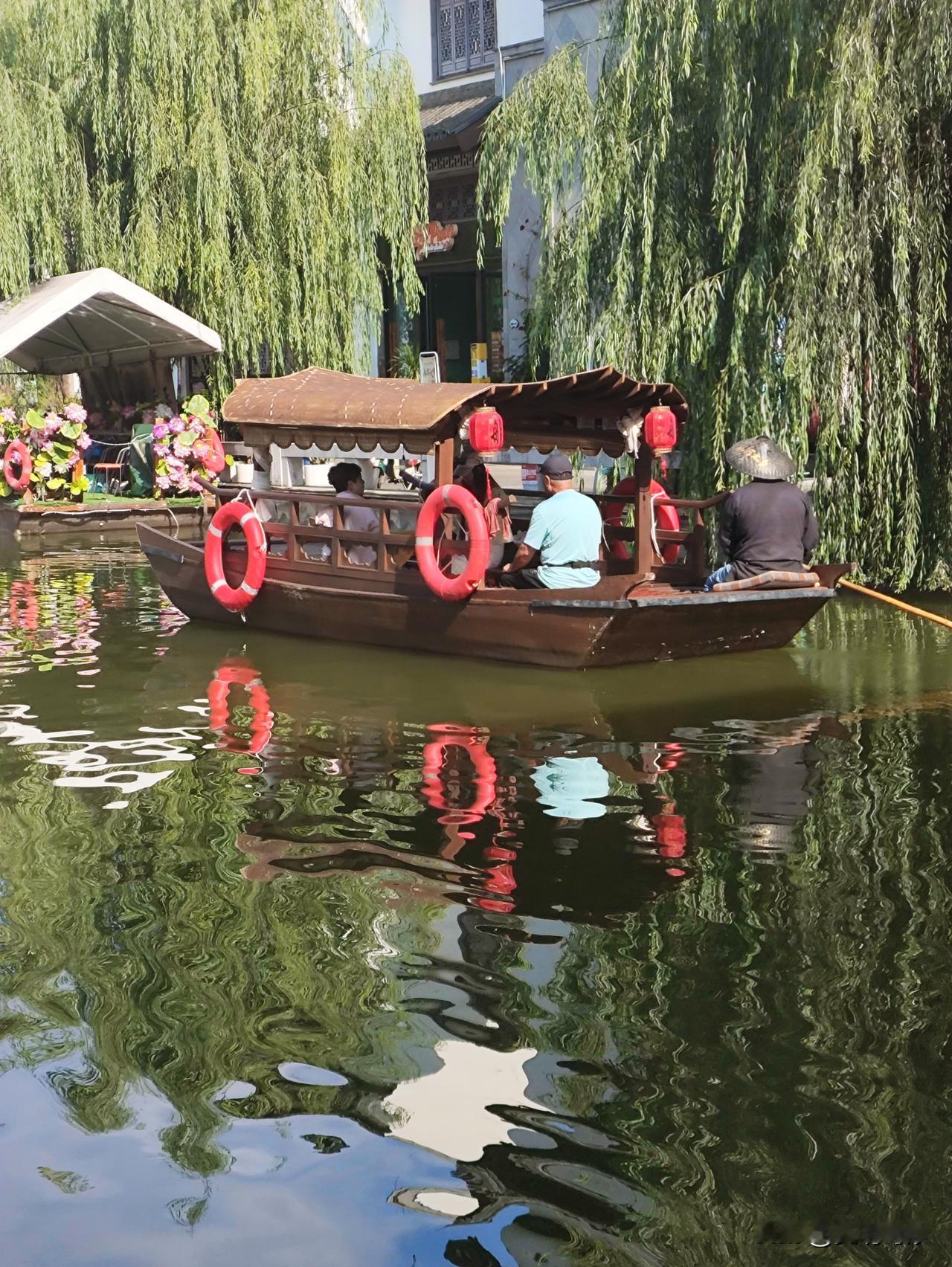 逛完湖泉生态园,来到很近的红河水乡,准备来喂鸭子和鱼。 鱼儿会跃出水面抢食,卷心菜也爱吃,后来鸭子来了,大鸭子很沉稳,一点都不和小鸭子抢食吃,真是个好家长! 游客也不多,恬淡的气氛正好,旁边有一桌人,无视这美景,嗑着瓜子打着牌。 偶尔来一船游客,依旧没有打破这份恬淡。天气预报说要降温了,今天可能是最后一个舒适的天气。