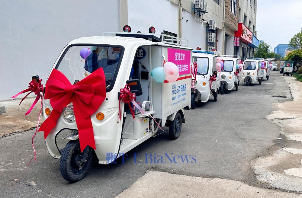 图说:菜鸟杭州一站点快递车装扮一新,给消费者带去收货仪式感