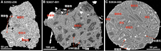 由中国科学院广州地球化学研究所徐义刚院士、林莽研究员指导,王锦团副研究员与博士研究生陈志铭等组成的研究团队,通过对嫦娥六号月壤样品开展系统的岩相学分析以及橄榄石微量元素和氧同位素组成研究,识别出来自CI型碳质球粒陨石的撞击残留物(图1)。科研人员指出这些碎片是CI型碳质球粒陨石母体撞击月球表面,发生熔融后快速冷却结晶的产物(图2)。该研究系统地建立了识别地外样品中陨石物质的方法。