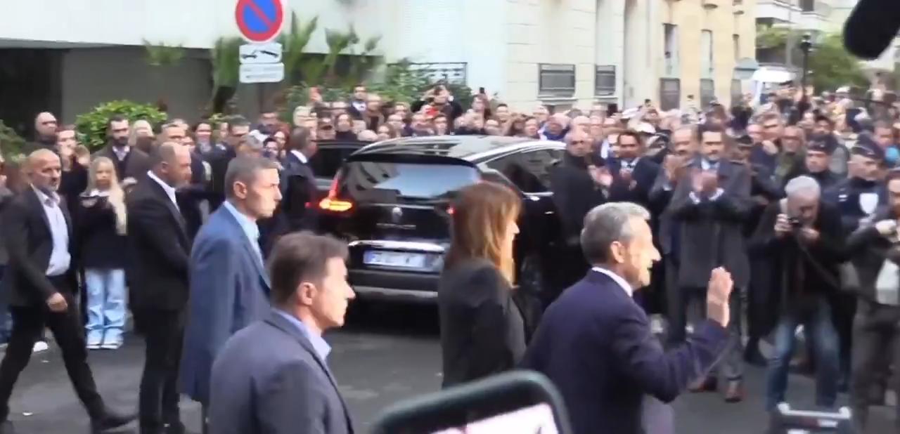 在一片欢呼和掌声中,法国前总统尼古拉·萨科齐离开家前往监狱 今天,70岁的萨科齐