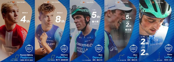 在迪卡侬专业装备的技术加持下,迪卡侬AG2R车队本赛季成绩可圈可点,车手突围总里程达12,690公里,领先次席超1,000公里,展现了世界级职业车队的综合实力。车手们在多个赛段中表现亮眼:古典赛车手斯坦・德伍尔夫(StanDEWULF)在崇左-靖西赛段展现顽强斗志,全程突围领先主集团170公里,荣膺"敢斗奖",随后在巴马—金城江赛段,他再度发力,持续突围162公里,多次斩获爬坡与冲刺积分,蝉联"敢斗奖",最终稳居爬坡积分总榜第三名;冲刺手维克多・拉菲(VictorLAFAY)在号称"皇后赛段"的宜州—弄拉赛段及南宁城市赛段中强势冲出重围,全程领跑追击集团,最终荣获个人总成绩第二名;古典赛车手皮埃尔・戈瑟拉(PierreGAUTHERAT)以稳定的发挥,最终荣获单赛段排名第六位;古典赛车手拉斯缪斯・索伊贝里・彼得森(RasmusSøjbergPEDERSEN)与冲刺手詹卢卡・波莱弗利耶(GianlucaPOLLEFLIET)亦发挥出色,在首个防城港城市赛段中分别斩获第四名和第八名。值得一提的是,全能型车手南斯・彼得斯(NansPETERS)将环广西世巡赛作为告别之战,曾深度参与了VANRYSEL公路车锁鞋开发的他,将竞技热血发挥到最后一刻,在南宁城市赛段一路坚持突围接近100公里,为职业生涯画上了圆满句号。