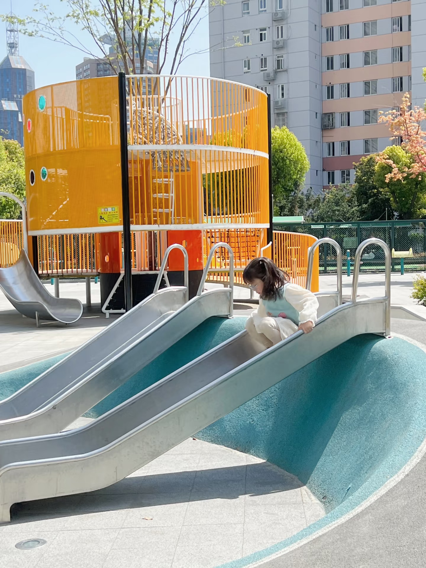 步行20分钟,小区里的无动力乐园,有小滑梯、攀爬架、挖沙池和大广场,平衡车友好。适合2-4岁小朋友
