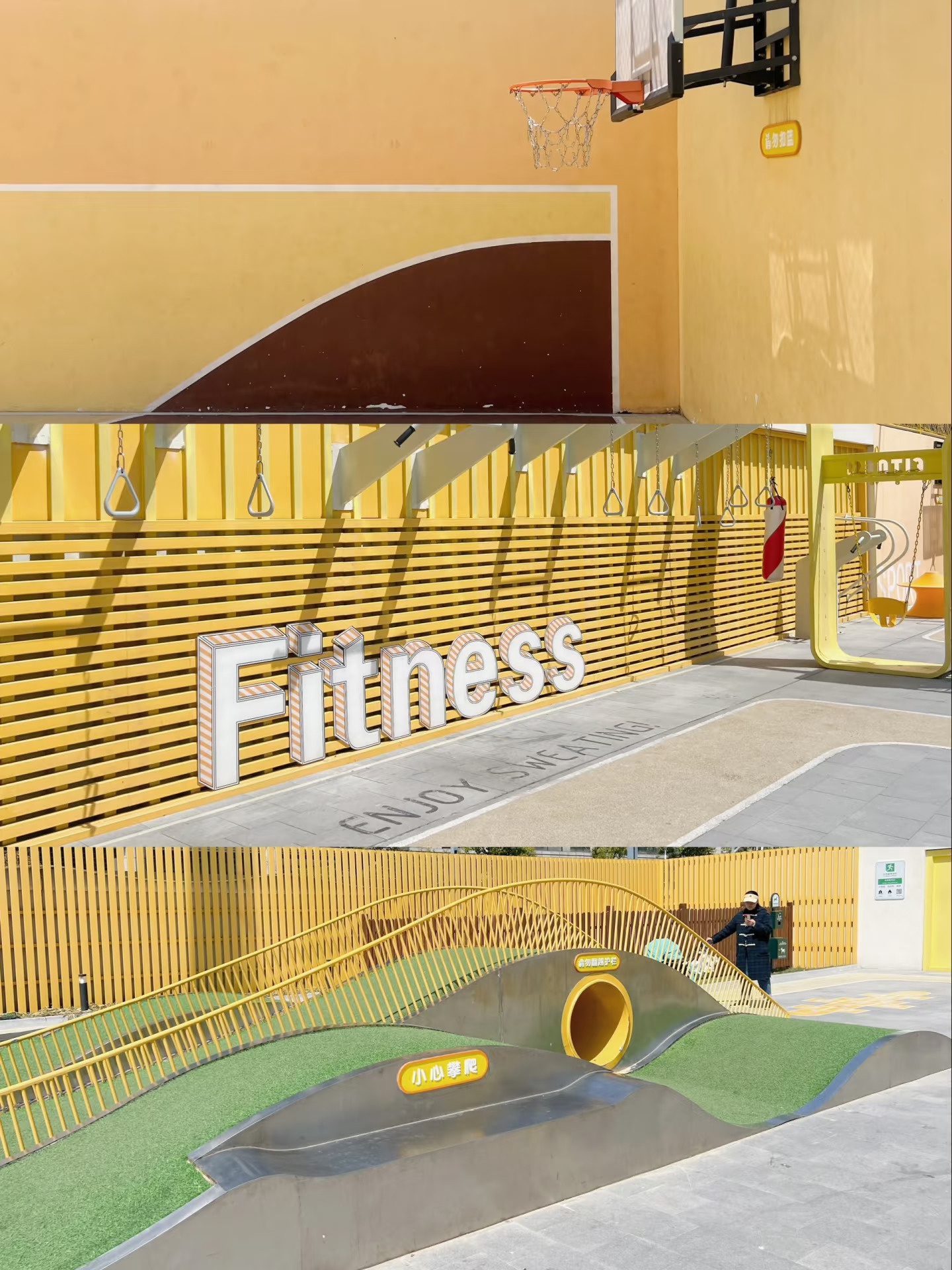 皮卡丘色的口袋公园,配色很有活力,有小卖部,适合1-4岁小朋友