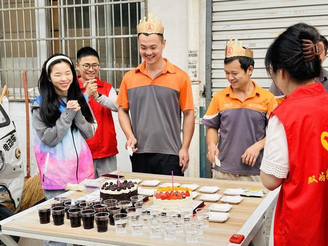 双屿街道就业群体暖心驿站为快递小哥过集体生日。受访者供图