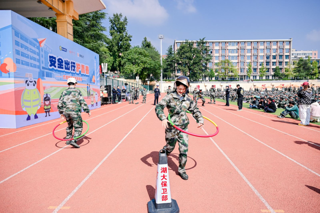 告别传统宣讲的“单向灌输”与“大水漫灌”,我们精准对接大学生的兴趣点与需求点,把活动变成了一场沉浸式安全体验。没有枯燥的条文,只有看得见、玩得到、记得住的安全知识:新生与交警同台演绎校园出行情景剧,在诙谐剧情里识破风险;“头盔接力赛”“单车骑行接力”竞技中,规范佩戴、安全骑行的技能自然掌握,最后再跟着交警一起“交通安全喊麦”,让安全倡议响彻校园。