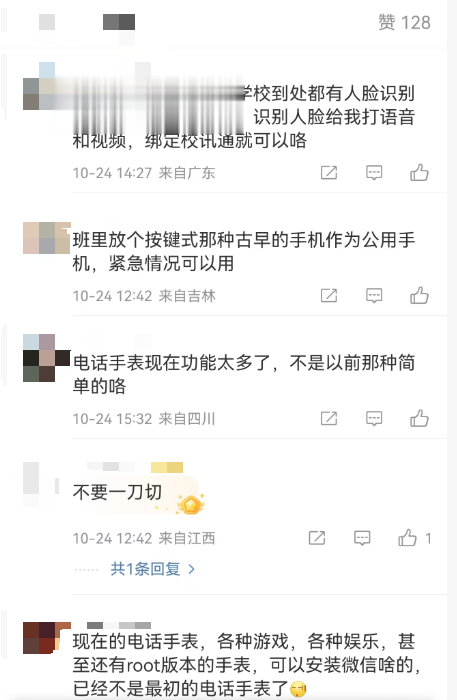 今天这份文件发布后,网络上的讨论有很多,有家长追问,手机不能带,电话手表能不能带?现在的电话手表功能强大,和手机无异,也要规范起来。