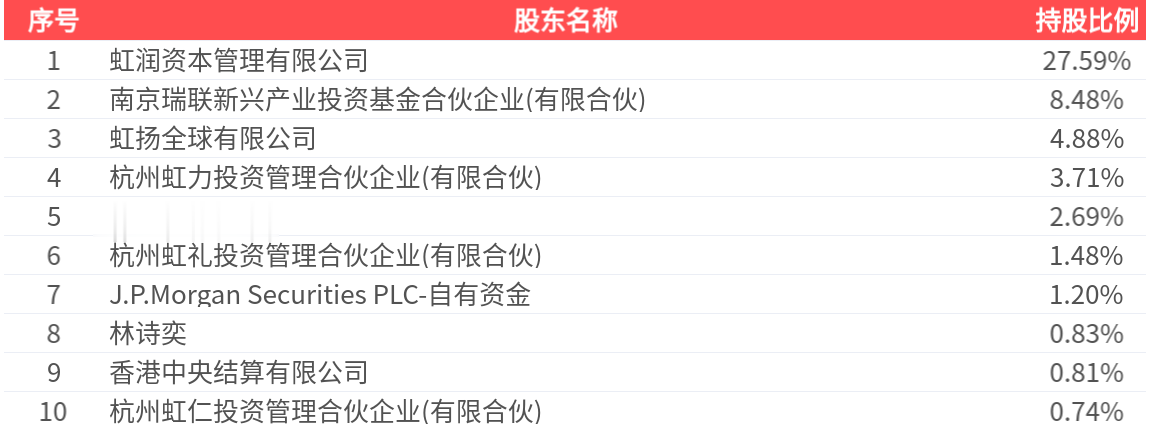 公司股东户数为2.29万户,前十大股东持股数量为2.10亿股,占总股本比例为52.41%,前十大股东持股情况如下: