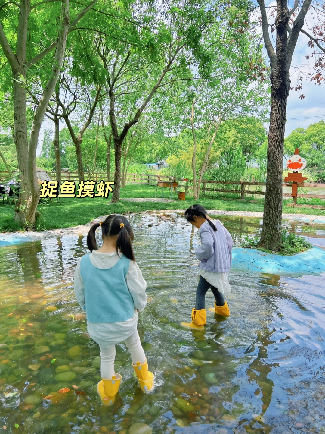 🔹踩水坑,水很浅🉑️穿上雨靴踩水,据说后续会有追鱼摸虾等亲子活动